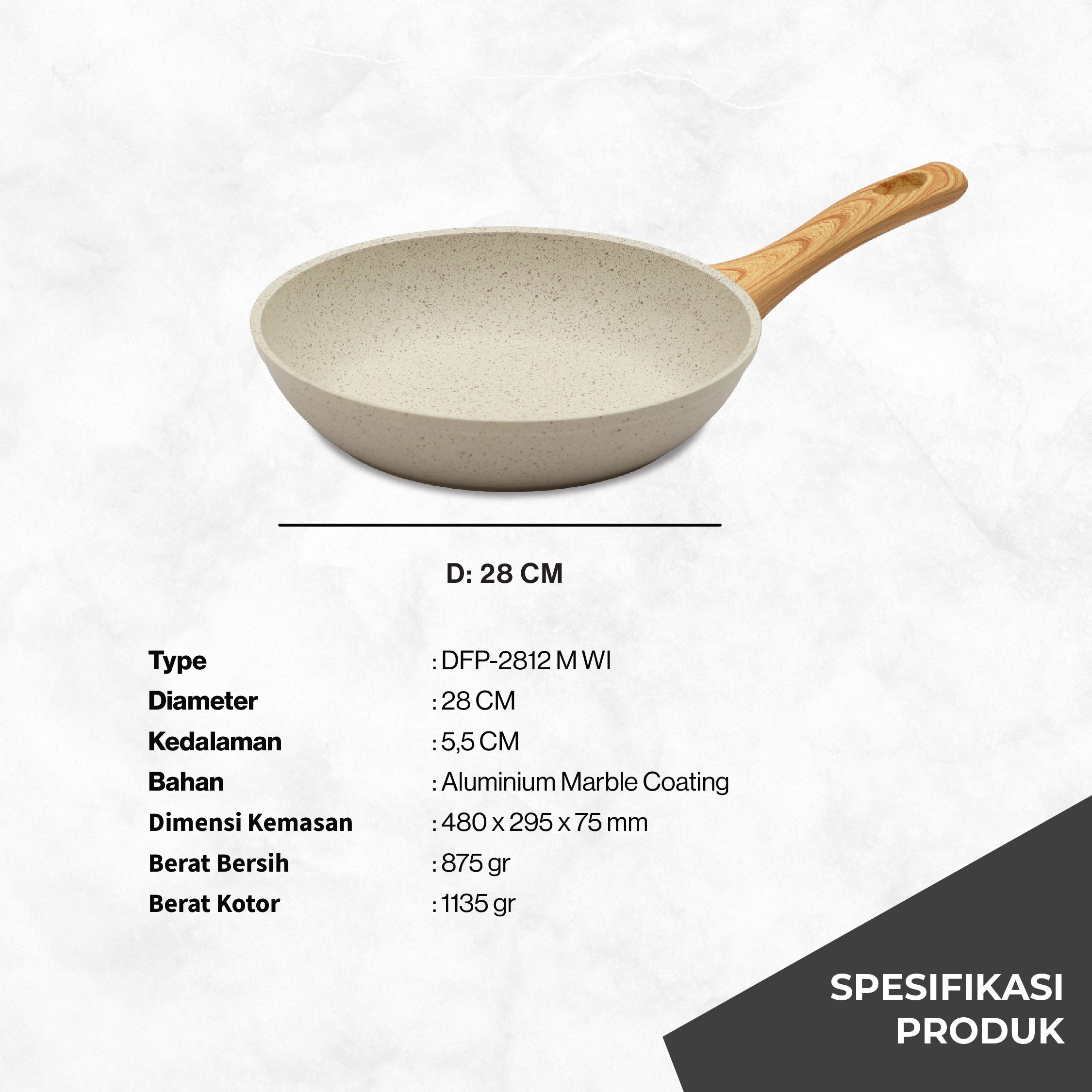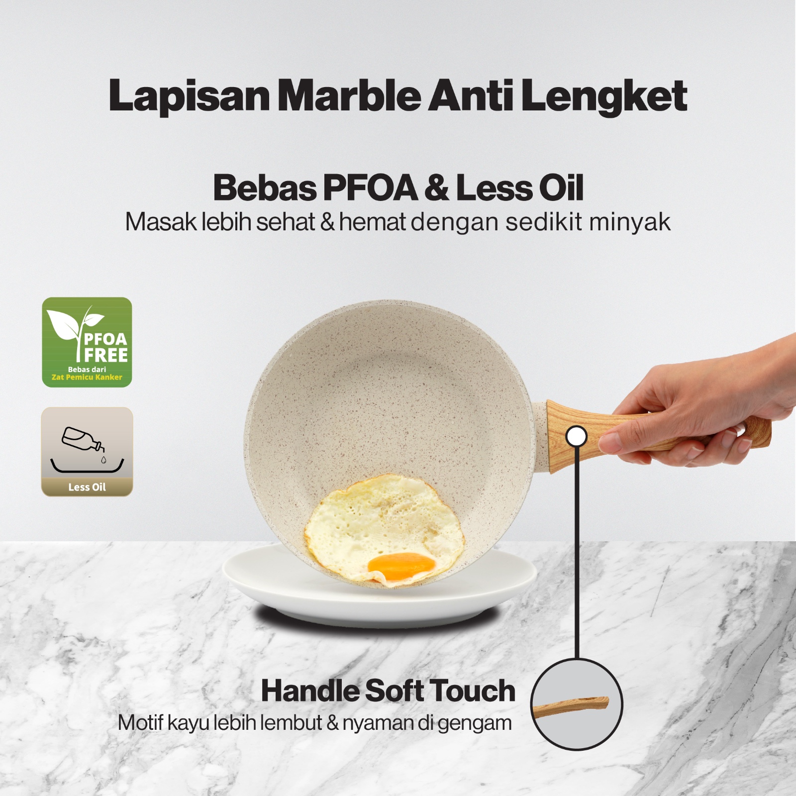 - Lapisan anti lengket dengan tampilan Marble yang mewah dan elegan