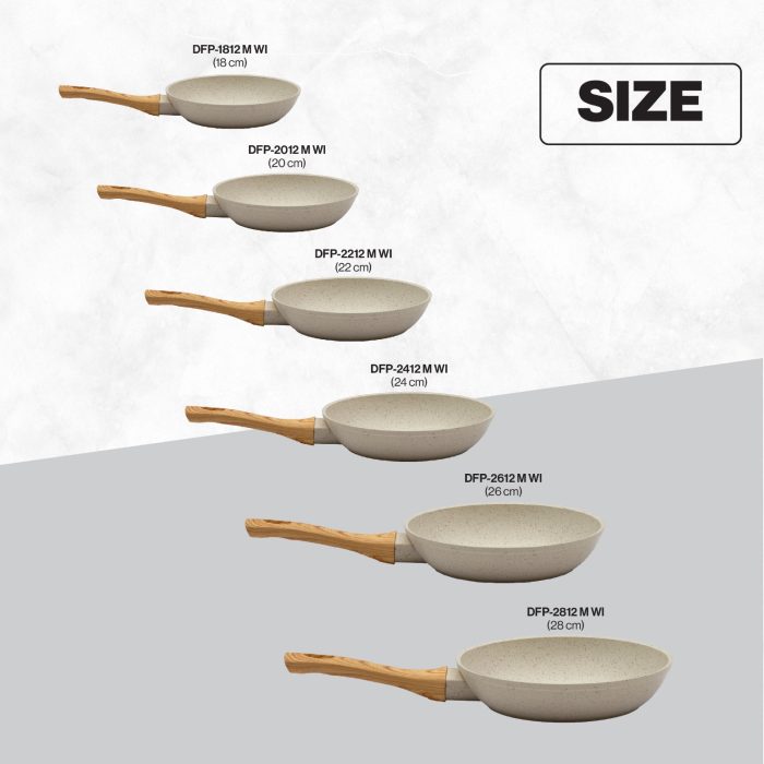 Miyako Cookware DFP-1812 M WI merupakan panci penggorengan Marble Coating berkualitas anti lengket yang mewah dan elegan sehingga mudah dibersihkan. DFP-1812 M WI memiliki diameter sebesar 18 cm dengan kedalaman panci 4 cm. Sangat ideal digunakan untuk menumis atau menggoreng berbagai jenis masakan.
