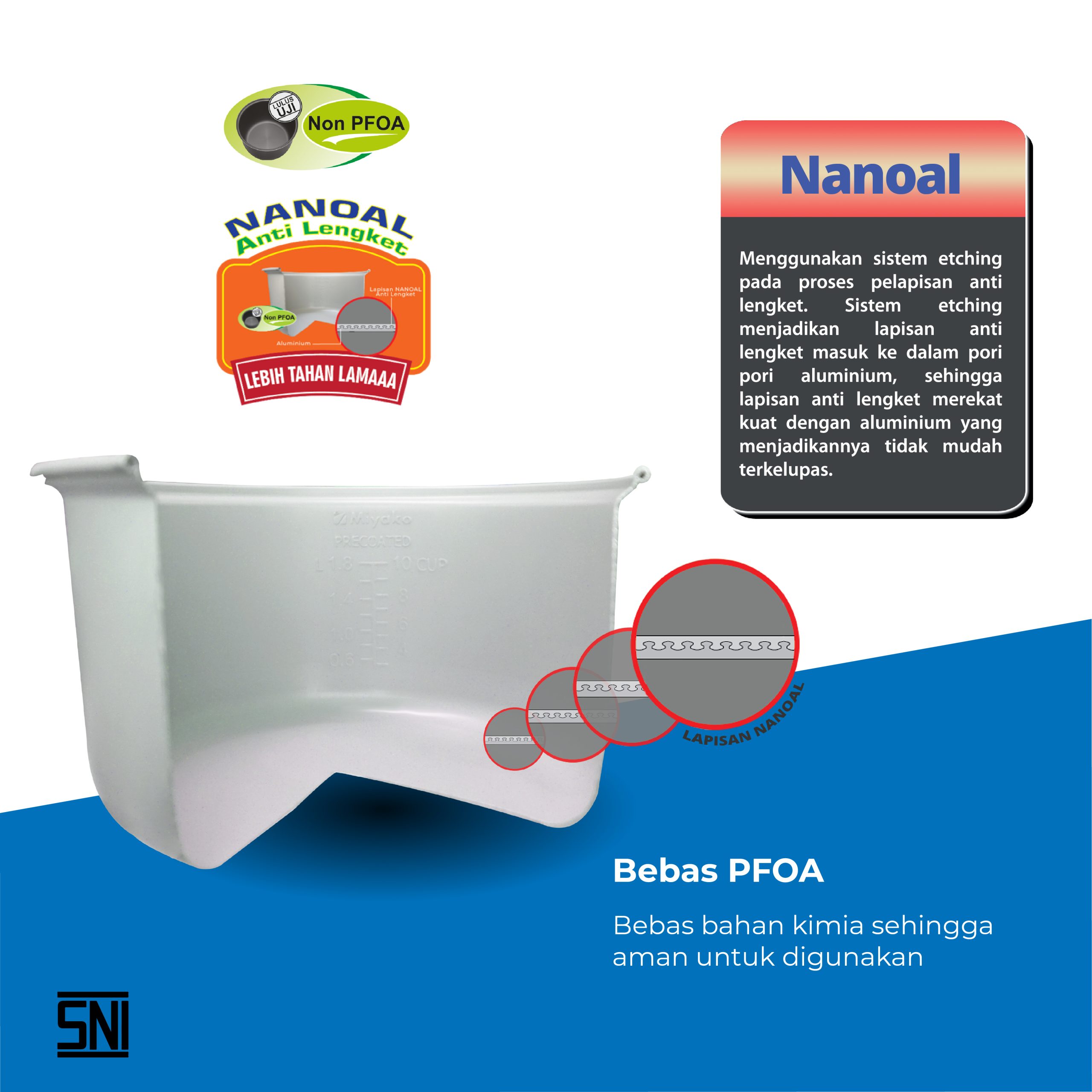 - Panci Rice Cooker dari lapisan Nanoal yang anti lengketnya 10x lebih tahan lama