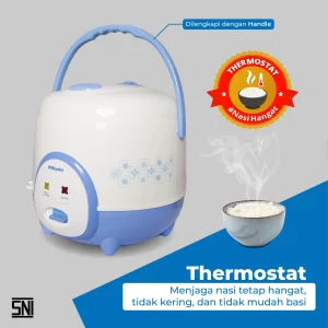 Merupakan penanak nasi dengan desain minimalis yang cocok untuk dapur Anda. Memiliki fungsi 3 in 1 yaitu sebagai pemasak nasi, mengukus, dan menghangatkan makanan. Bagian inner pot yang terbuat dari material berkualitas tinggi menjadikannya anti lengket, tidak mudah tergores dan sangat mudah untuk dibersihkan. Memiliki 3 element pemanas dibagian atas, tengah dan bawah yang menjadikan nasi matang lebih sempurna dan tahan hangat lebih lama.